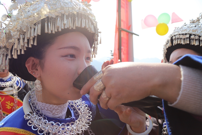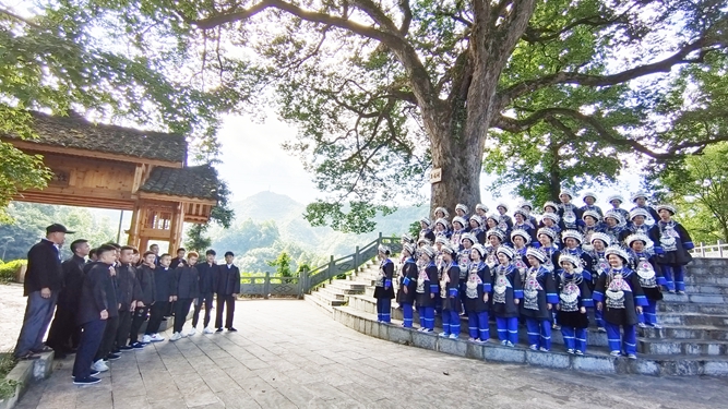 从那次民族文化调研考察之行后,我对报京侗族传统文化守望与繁荣兴盛有了更高的自信。对于早熟于耳的“葱蒜为媒,讨葱定情”情歌对唱的探究,也因美丽而得到了回答。于是,阳春三月一大早,我和几位朋友相约到报京,亲身体验和感受侗族“三月三”讨葱节(情人节)。初三上午八点,报京全寨的男女老少身穿节日盛装,男青年捧着芦笙,女青年拿着牛角,中年人握着铁炮、鞭炮,在寨门夹道等候宾朋光临。在一种特殊礼节的拦路酒中,宾朋们在热闹气氛中“酒未沾唇人先醉”。优美的迎宾芦笙歌曲调,在空旷的丛林深处回响,此时一种游子荣归故里的激情在心中燃烧,满脑子的乡愁记忆沉醉在“歌的海洋”里,着实让人流连忘返。