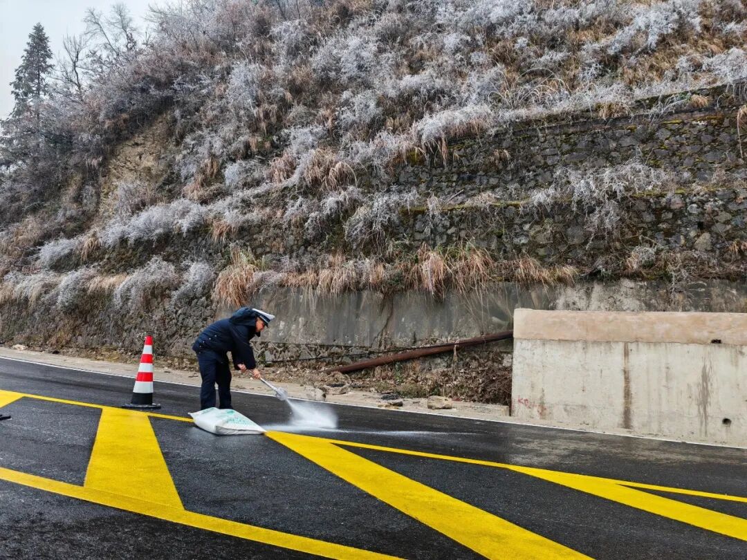 抓细隐患排查,织密安全网络。聚焦农村连片木质房屋、危旧房屋、学校等重点场所以及辖区内易凝冻结冰路段和急弯陡坡等关键节点,开展拉网式、地毯式隐患排查。累计排查重点场所10处、关键路段4条。对易结冰路段、急弯陡坡、桥梁涵洞等重点区域设立明显标识8块、安全防护设施5处,提前筹备除雪除冰设备及物资共4类40余件。其中,针对溜沙关易结冰路段,镇党委政府联合交警四中队第一时间响应,及时开展除冰作业,全力保障群众出行安全。