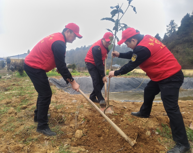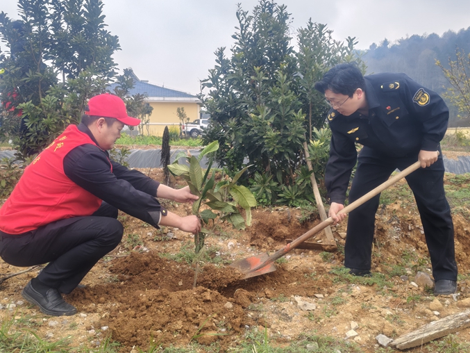 近日,贵州省交通运输综合行政执法七支队六大队党支部联合黔东南州公安局交警支队党总支第十支部,开展“警徽映绿意·执法添生机”植树活动。七支队六大队的党员干部充分发挥先锋模范作用,以饱满的热情和扎实的行动,为路域景观增添生态新绿。