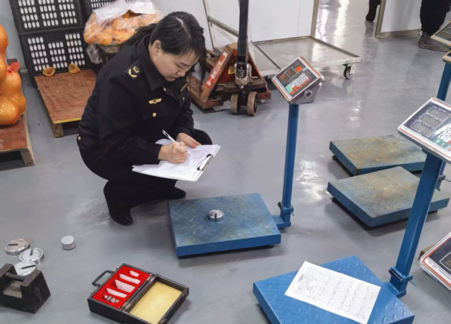 为切实维护市场公平交易秩序,保障消费者合法权益,落实《集贸市场计量监督管理办法》等法律法规,12月8日至9日,镇远县市监局检验检测中心组织检定人员,对南门沟集贸市场以及1家食品配送企业开展计量检定上门服务,检定电子秤共计42台件,其中包括南门沟集贸市场公平秤1台。