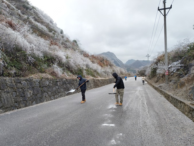 镇远县江古镇:镇村两级齐出动 除冰作业保畅通