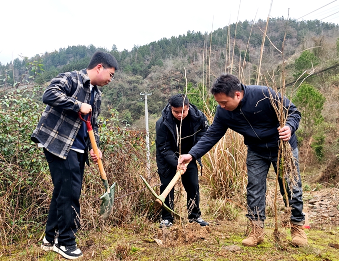 在都坪村、新寨村的部分路段,植树现场一片热火朝天。大家两人一组、三人成团,分工协作、配合默契,严格按照植树规范,挥锹铲土、扶正苗木、填土压实、提水浇灌,每一道工序都一丝不苟。经过一番辛勤劳作,一排排银杏树迎风挺立,为初春的都坪大地增添了勃勃生机,也为“鱼米之乡”勾勒出更美的生态底色。