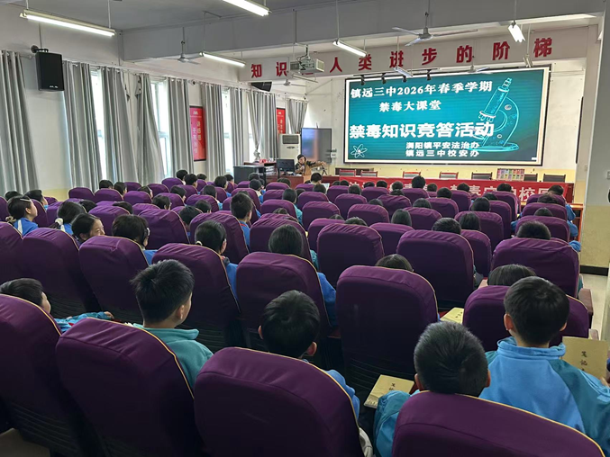 为深入推进平安校园建设,切实增强青少年法治观念和安全防范意识,近日,镇远县㵲阳镇到镇远县第三初级中学,开展了一场别开生面的禁毒、反诈、反邪、森林防火“四位一体”安全宣传教育活动,为广大师生送上一堂内容丰富、形式生动的安全知识课。